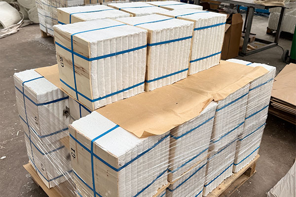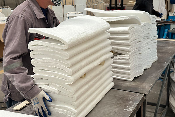 为了简化和加快窑炉施工、提高炉衬整体性而推出的新型耐火炉衬制品。该产品颜色洁白、尺寸规整,能直接固定于工业窑炉炉壳钢板锚固钉上,具有良好的耐火隔热效果,提高了窑炉耐火隔热的整体性。